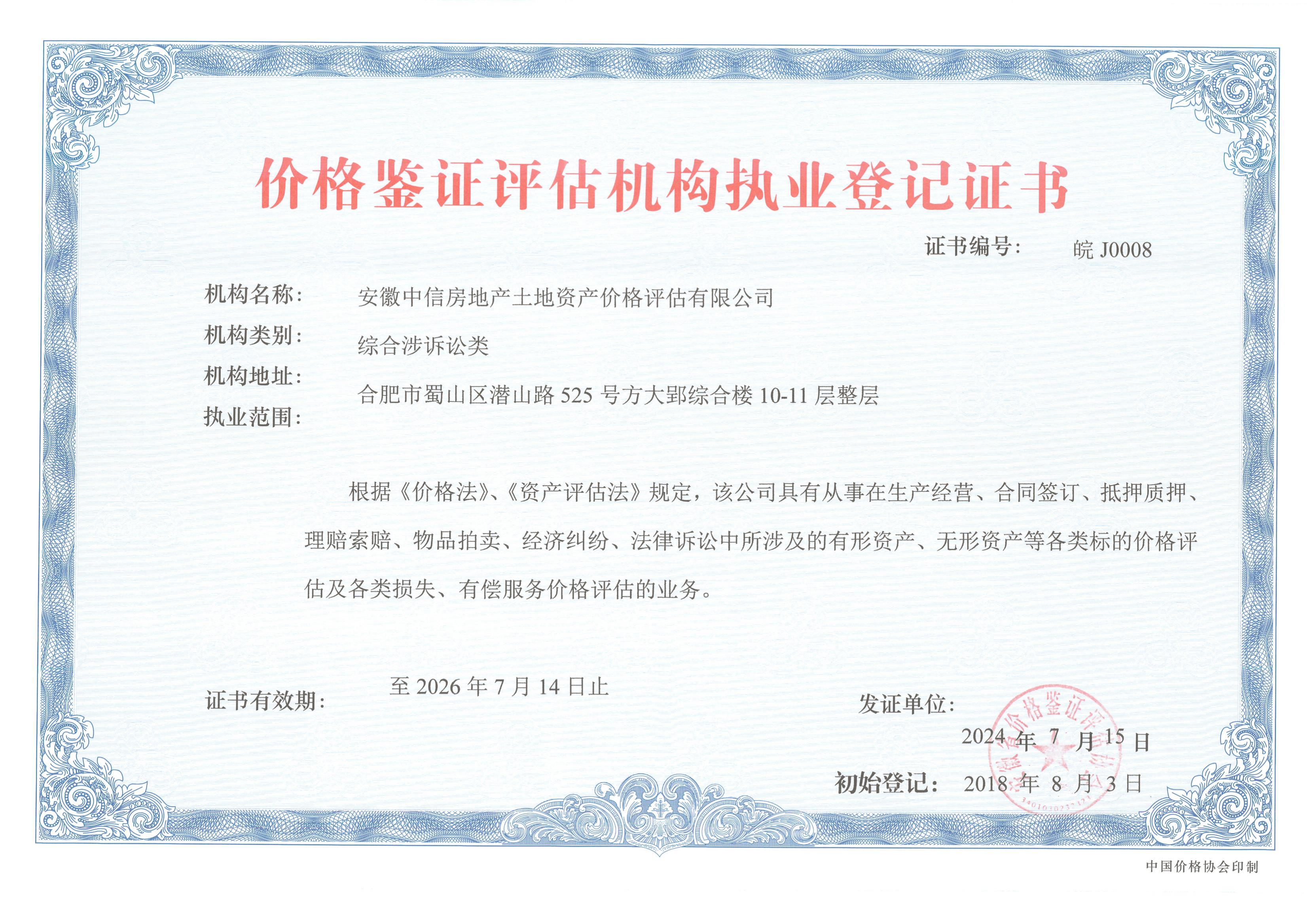 價(jià)格評(píng)估機(jī)構(gòu)執(zhí)業(yè)登記證書(shū)