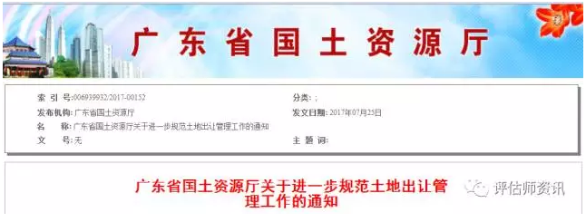 廣東省國土資源廳關(guān)于進一步規(guī)范土地出讓管理工作的通知