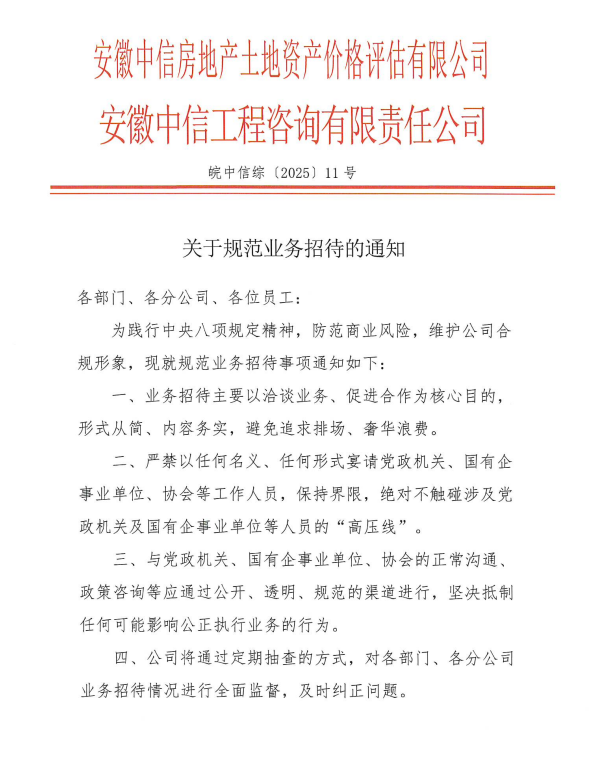 公司關(guān)于規(guī)范業(yè)務(wù)招待的通知