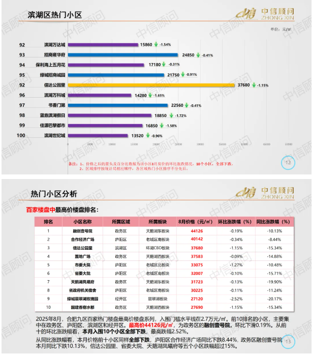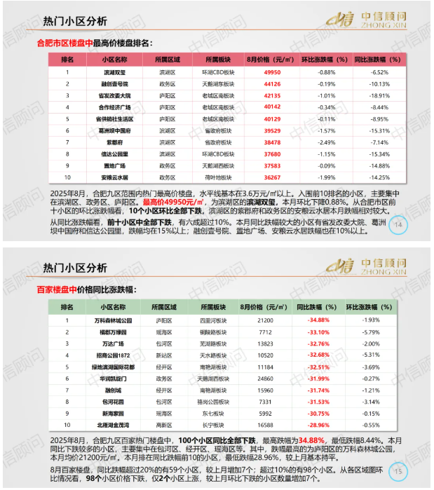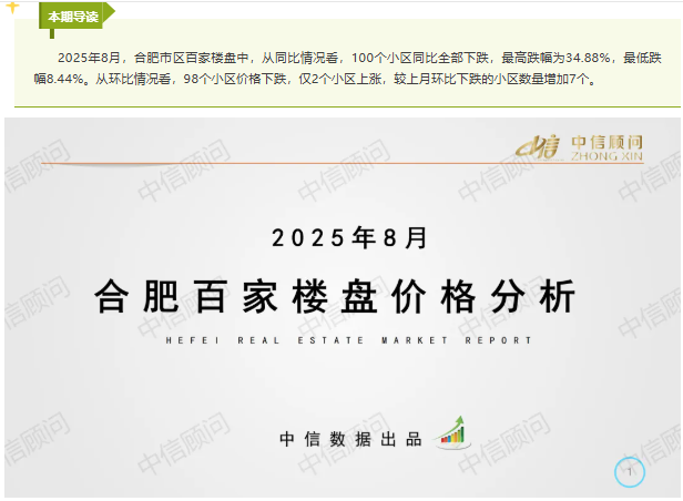 二手房市場 | 2025年8月,合肥百家樓盤環(huán)比98下跌2上漲,環(huán)比下跌小區(qū)數(shù)量增加