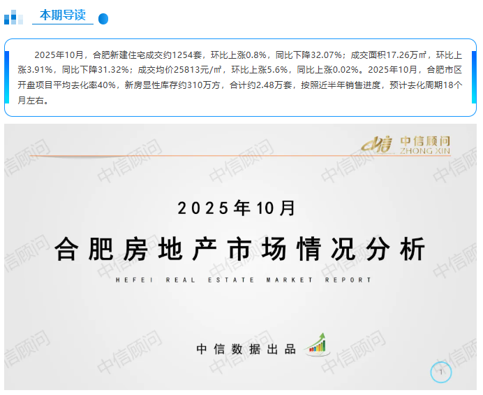 新房市場 | 2025年10月,合肥新房成交量環(huán)比上漲0.8%,成交價格環(huán)比上漲5.6%